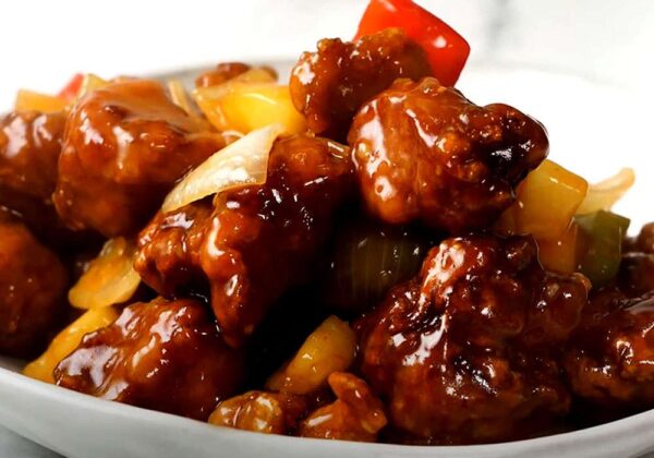 – коли карамель повністю розчиниться, додайте нарізану цибулю та м’ясо і готуйте 25-30 хвилин на великому вогні, постійно помішуючи.