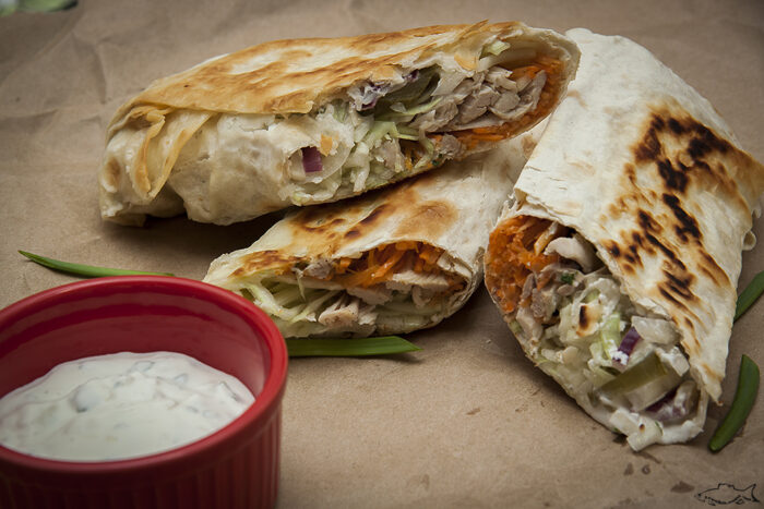 Наріжте м’ясо тонкими смужками та обсмажте на пательні, додавши спеції за смаком.