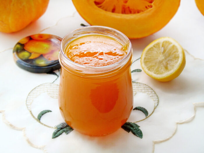 Наріжте очищений гарбуз невеликими кубиками, складіть у глибоку каструлю та засипте цукром. Залишіть настоюватись протягом 60 хвилин.