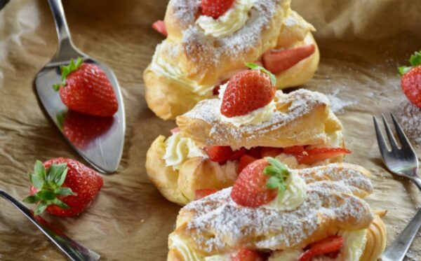 – наповнювати еклери кремом можна за допомогою кондитерського шприца або просто роблячи надрізи збоку і вкладаючи туди крем. Готові еклери посипате цукровою пудрою або полийте розтопленим шоколадом.