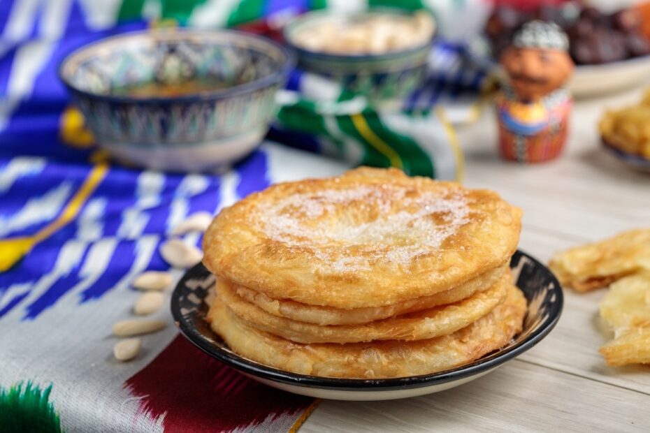 У просіяне борошно додати сіль, цукор і влити окріп. Ложкою почати замішувати тісто поки воно гаряче, далі руками домісіть — треба отримати м’яке податливе тісто.