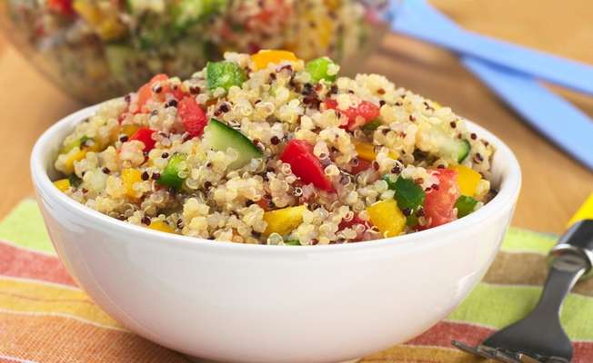 Кіноа цінують за високий вміст рослинного білка і основних амінокислот, тому варто використовувати кіноа замість рису, кускусу або пшеничної крупи. Воно чудово поєднується зі свіжими і запеченими овочами, його можна додавати в салати, випічку і десерти. Пропонуємо приготувати салати з кіноа.