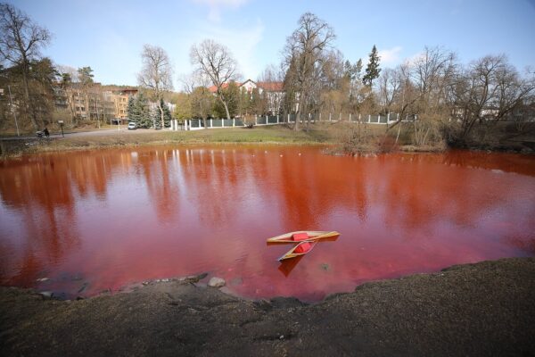 6 квітня, у Литві навпроти посольства Росії воду в ставку пофарбували у червоний колір. Міська влада повідомила, що це такий художній перформанс, мета якого — звернути увагу світу на Bоєнні злочини Росії одо України, написав литовський сайт Delfi.