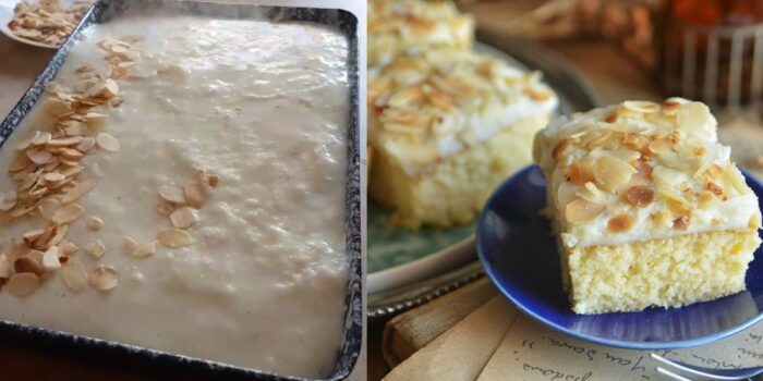 На сковорідці (сухій) смажимо мигдальні пластівці на середньому вогні. Отримавши бажаний золотистий відтінок, посипаємо ними пиріг.