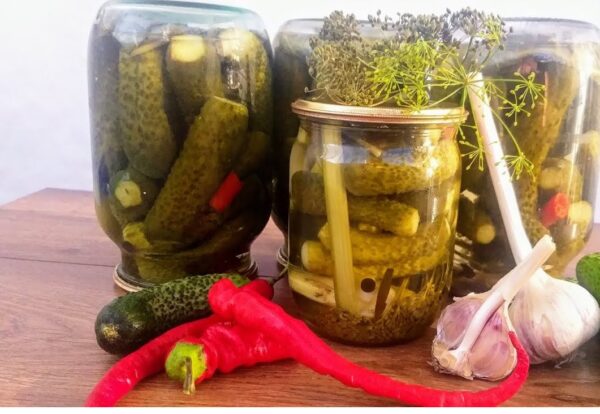 – у стерелізовані банки викладіть огірки, залишивши 3 сантиметри вільного простору у верхній частині банок.
