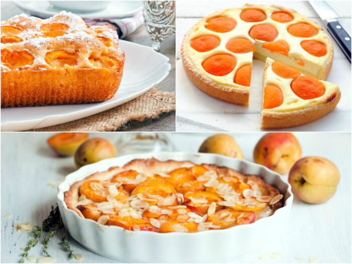 Вилийте тісто у форму та занурте у нього половинки абрикосів.
