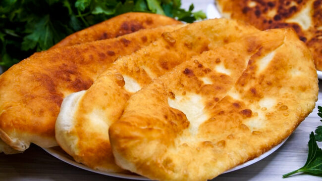 – защипніть протилежні краї лепішки, приплюсніть злегка долонею, а потім розкачайте тонко за допомогою качалки.