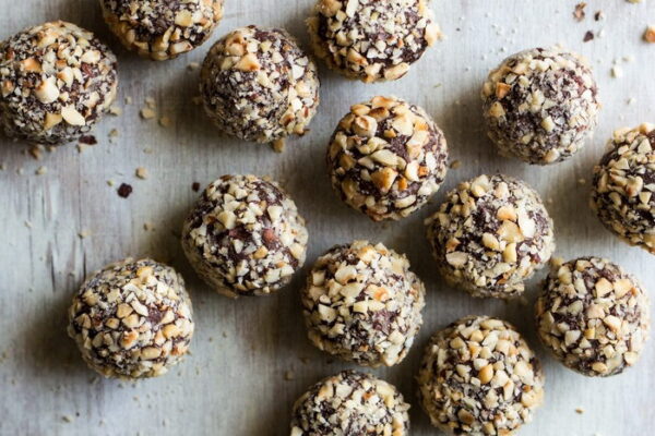 – з отриманої маси сформуйте кульки, всередину сховайте ціле ядро горіха і обваляйте у подрібнених волоських горіхах.