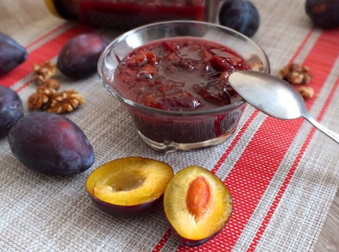 Потім варення зняти з вогню, дати остигнути і додати горіхи.